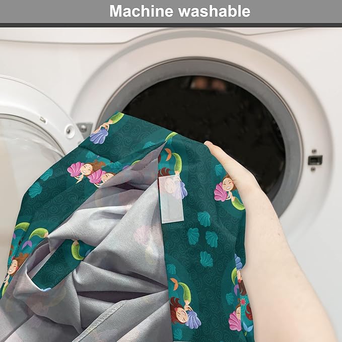 Lunarable Mermaid Dog Crate Cover, Smiling Happy Cheerful Mermaids with Seashells Scallops Exotic Waters Spirals, Easy to Use Pet Kennel Cover for Cats & Medium Dogs, 24 Inch, Teal Multicolor