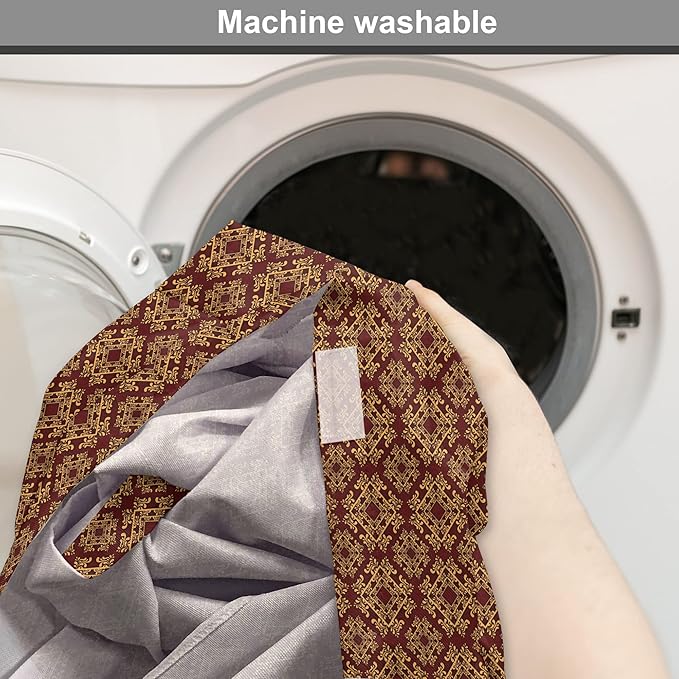Lunarable Burgundy Dog Crate Cover, Royal Victorian Pattern with Antique Design Elements Baroque Swirls Squares, Easy to Use Pet Kennel Cover for Small Dogs Puppies Kittens, 18 Inch, Burgundy Mustard