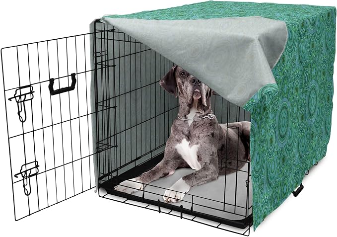 Lunarable Emerald Dog Crate Cover, Mandala Pattern with Soft Color Pattern Complex Motif Eastern Geometric Style, Easy to Use Pet Kennel Cover for Medium Large Dogs, 48 Inch, Green Blue