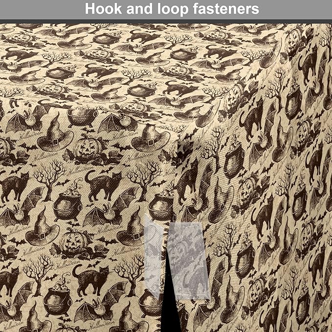 Lunarable Vintage Halloween Dog Crate Cover, Halloween Witch Hat Cauldron Fall Jack o' Lantern Black Cat, Easy to Use Pet Kennel Cover for Medium Large Dogs, 48 Inch, Pale Brown