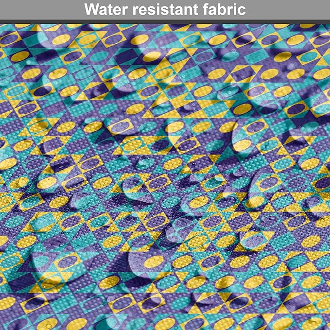 Lunarable Yellow and Blue Dog Crate Cover, Circles Squares and Triangles Mosaic Pattern with Dots Vibrant, Easy to Use Pet Kennel Cover for Small Dogs Puppies Kittens, 18 Inch, Purple Sky Blue Yellow