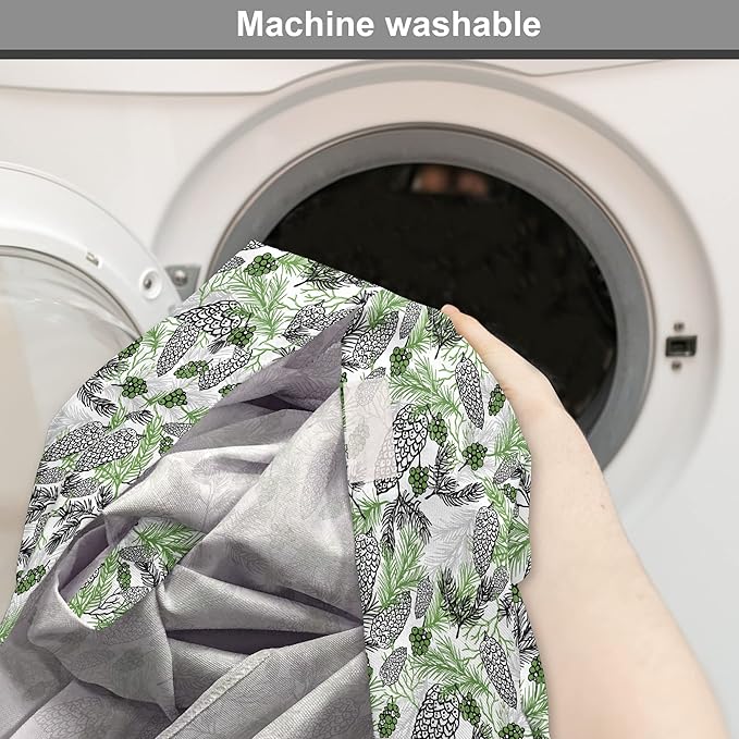 Lunarable Green Xmas Dog Crate Cover, Pine Cones and Holiday Theme Plants Fir Tree Motifs Print, Easy to Use Pet Kennel Cover for Small Dogs Puppies Kittens, 22 Inch, White Fern Green