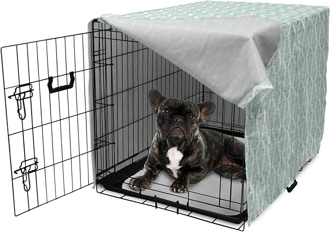 Lunarable Damask Blue Dog Crate Cover, Vintage Antique Pattern with Classic Victorian Motif, Easy to Use Pet Kennel Cover for Cats & Medium Dogs, 24 Inch, Eggshell Pale Cadet Blue