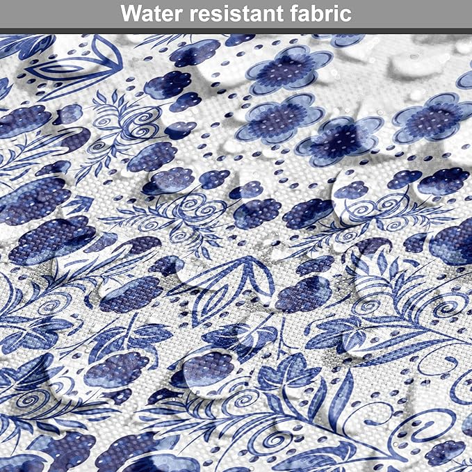 Lunarable Traditional Dog Crate Cover, Circular Flowers and Stripes Ethnic Gzhel Pattern Classic Motifs Art, Easy to Use Pet Kennel Cover for Medium Large Dogs, 42 Inch, Pale Blue