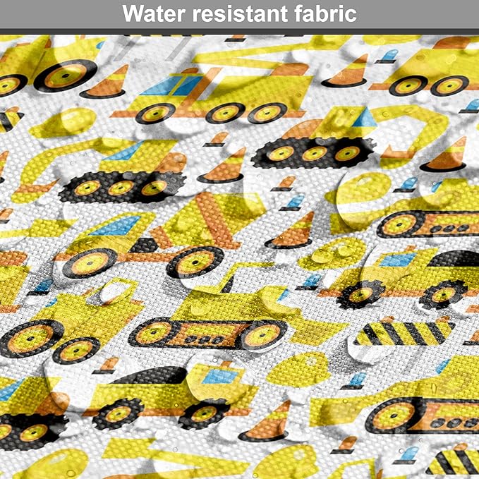 Lunarable Cartoon Dog Crate Cover, Construction Vehicles Style Machines Safety Building Theme, Easy to Use Pet Kennel Cover for Cats & Medium Dogs, 30 Inch, Yellow White Black