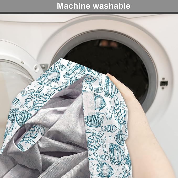 Lunarable Under The Sea Dog Crate Cover, Hand Drawn Sketch Art Style Fauna of The Sea Turtle Starfish and Fishes, Easy to Use Pet Kennel Cover for Medium Large Dogs, 48 Inch, Blue White