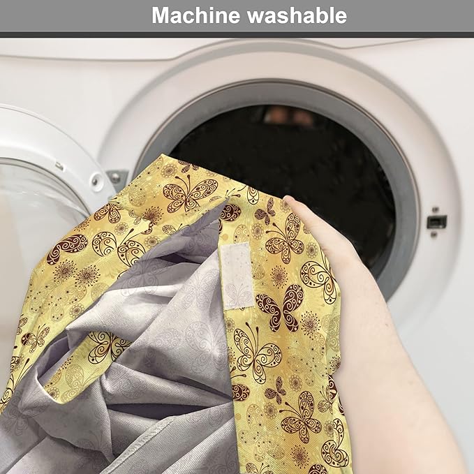 Lunarable Yellow and Brown Dog Crate Cover, Butterflies with Lace Style Ornament Spring Season Beauty Nature Print, Easy to Use Pet Kennel Cover for Cats & Medium Dogs, 30 Inch, Chestnut Brown