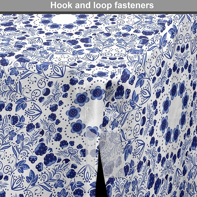 Lunarable Traditional Dog Crate Cover, Circular Flowers and Stripes Ethnic Gzhel Pattern Classic Motifs Art, Easy to Use Pet Kennel Cover for Medium Large Dogs, 48 Inch, Pale Blue