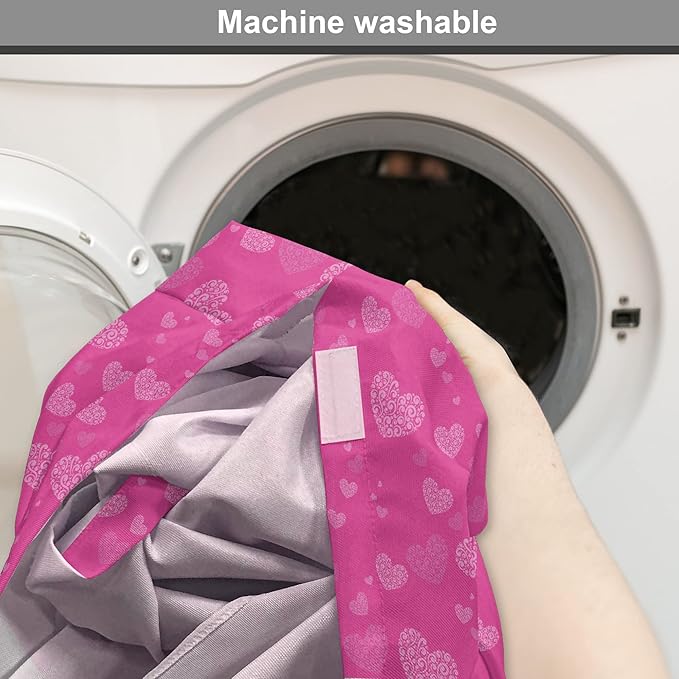 Lunarable Love Dog Crate Cover, Romantic Theme Abstract Heart Shapes Valentines Day 14th February Design, Easy to Use Pet Kennel Cover for Medium Large Dogs, 48 Inch, Hot Pink