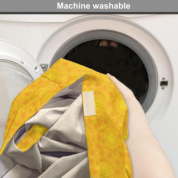 Lunarable Yellow Mandala Dog Crate Cover, Vibrant Colored Abstract Lotus Flowers Native Art Warm Sun Inspired, Easy to Use Pet Kennel Cover for Medium Large Dogs, 42 Inch, Yellow Orange