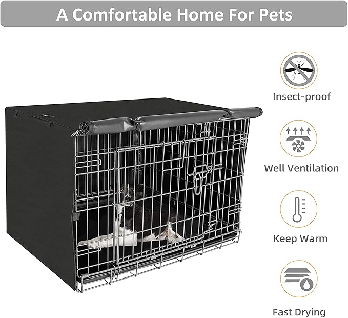 - 【Heavy-Duty & Durable Material】Durable dog kennel cover made of tear resistant and water resistant 420D polyester with PVC coating,which is windproof and durable, prevent damage caused by pet scratching.