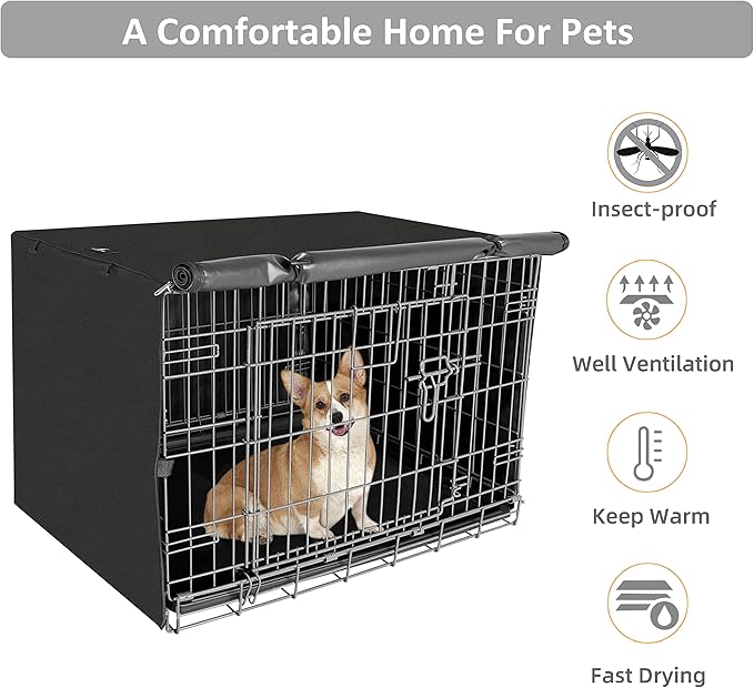 - 【Heavy-Duty & Durable Material】Durable dog kennel cover made of tear resistant and water resistant 600D polyester with PVC coating,which is windproof and durable, prevent damage caused by pet scratching