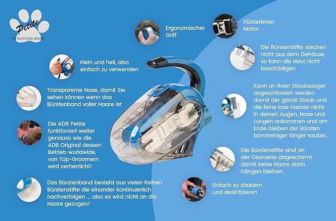 Automatic Dogbrush - Catbrush - Electric slickerbrush for dogs and cats with medium to long hair - Including flexible hose for connecting to your hoover - Dematting - Easy way of grooming