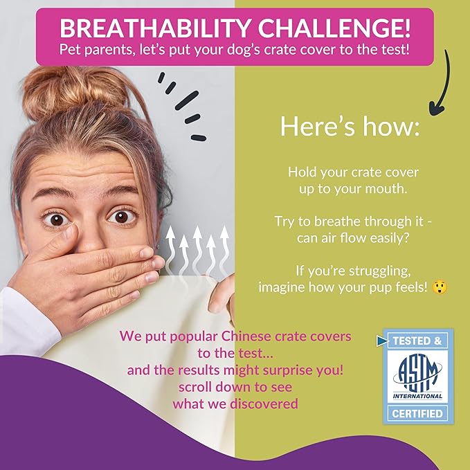 - ππ«ππππ‘πππ₯π ππ¨π ππ«πππ ππ¨π―ππ«: Clinically Tested and Rated Best Air Flow. Most Dog Crate Covers are polyester coated with toxic PVC that are Not Breathable despite false claims. Our Covers were tested by a certified government laboratory and had the highest air flow score. They are made for Indoor use and are never coated for maximum ventilation.