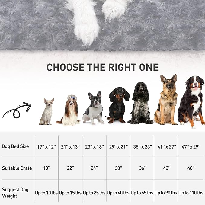 KSIIA Washable Dog Bed Deluxe Plush Dog Crate Beds Comfy Kennel Pad Anti-Slip Pet Sleeping Mat for Large, Jumbo, Medium, Small Dogs Breeds, 35" x 23", Dark Grey
