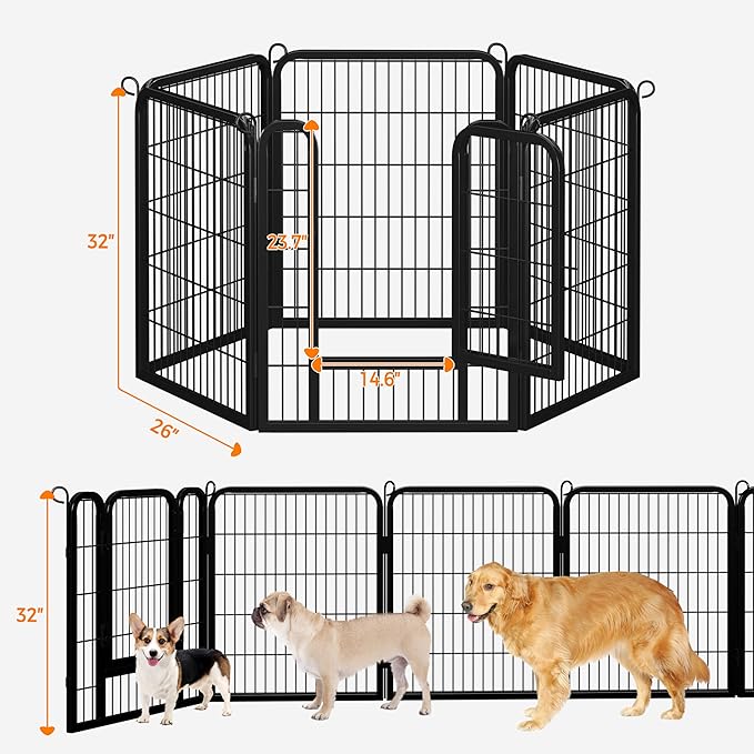 Yaheetech Dog Playpen Outdoor, 32 inch 6 Panels Dog Pen Indoor Heavy Duty Puppy Exercise Pen Metal Pet Fence for RV Camping/Yard/Garden