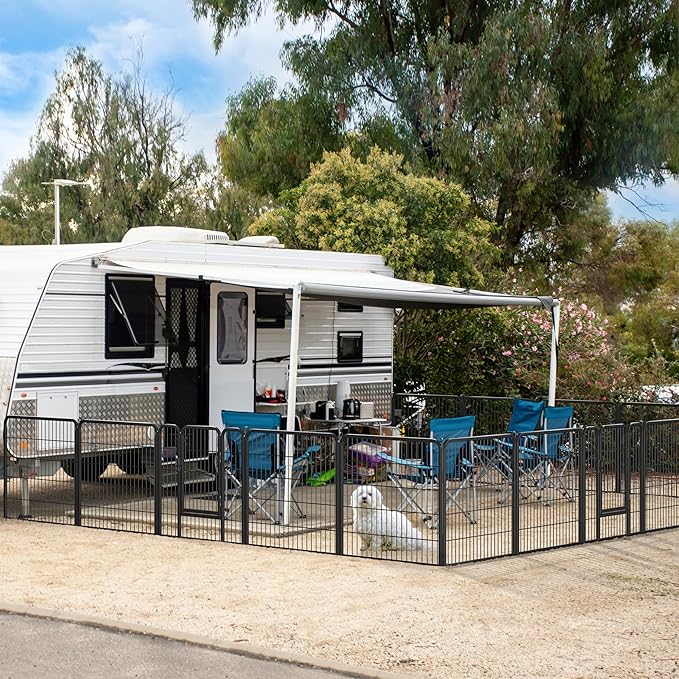 - Great for Camping: The foldable and portable design of this puppy playpen allows for hassle-free transfer from your residence to your vehicle, making it a perfect addition for those looking to go RV camping or travel with their pets