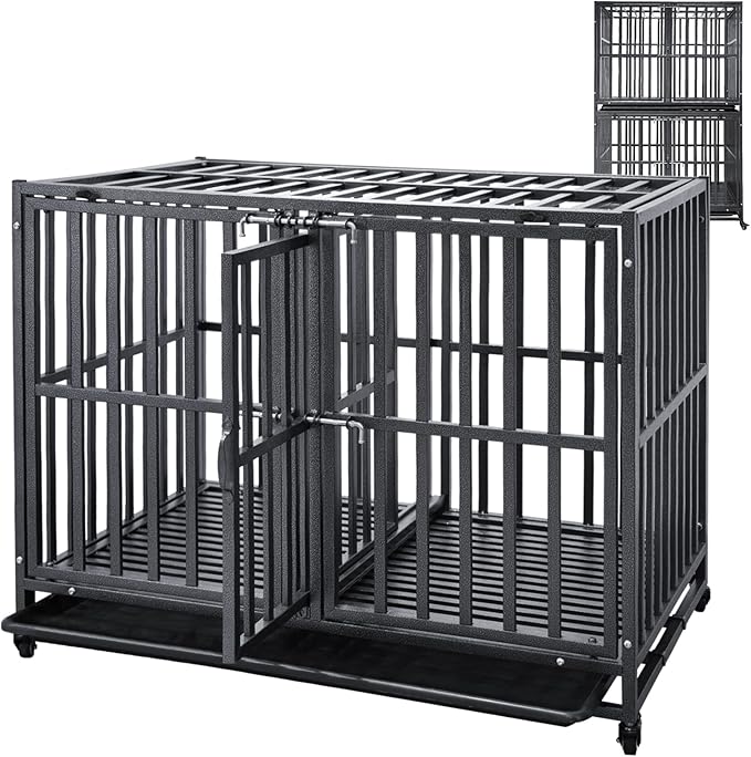 - 【STACKABLE DOG KENNELS】This dog cage has a stackable feature, so if you buy more than one heavy duty dog crate you can stack them to help you save more space. Note that the same model of dog kennel is required for stacking.