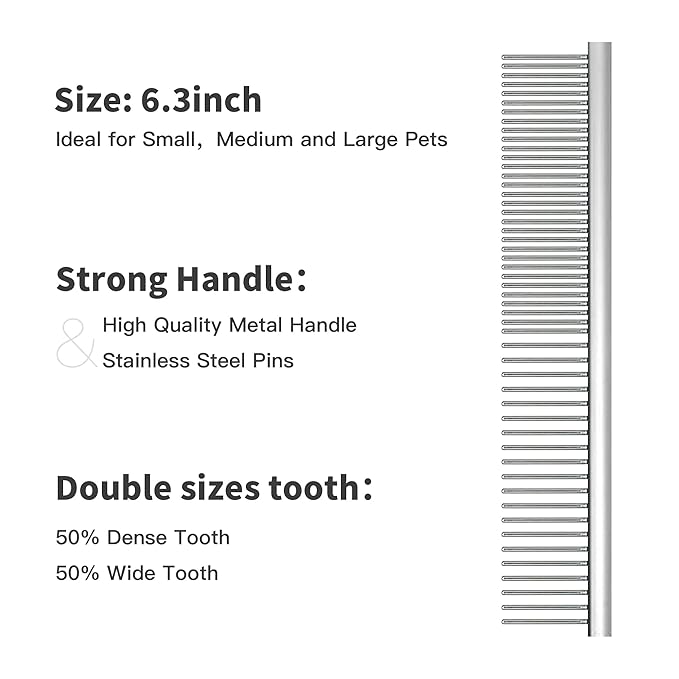 - 2 IN 1 STAINLESS STEEL COMB: The pet comb has high quality anti-static stainless steel round teeth that are strong enough. Our dog grooming comb features round teeth that break up tangles and effectively remove loose hair, dander dirt trapped beneath fur. NeatHoiho cat comb naturally support the health of your furry best friend by boosting circulation