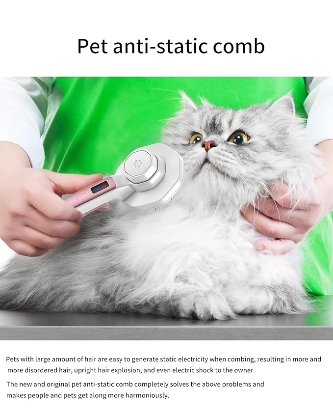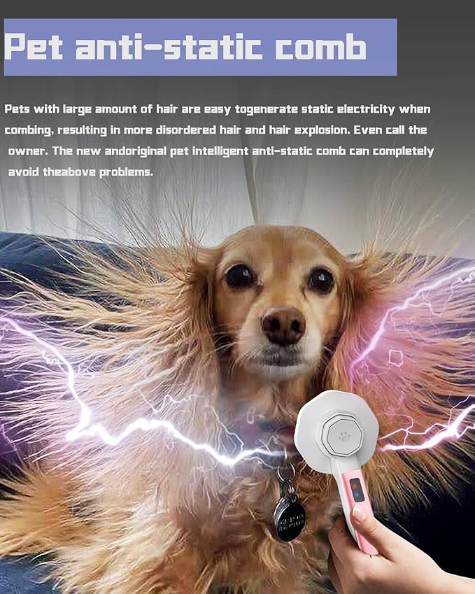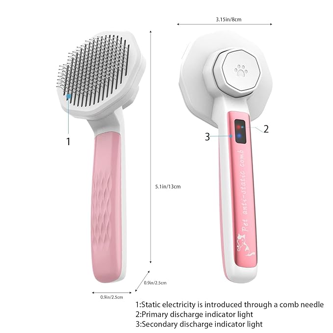 - 【Practical electrostatic function 】Static electricity is generated in a particularly dry environment. For example, in autumn and winter, some people who keep long haired pets will have a particularly obvious feeling. In dry weather, long haired pets will have hair explosion. At this time, this anti-static comb can effectively eliminate static electricity, and the static indicator light will be lit because of static electricity, which is why this light does not need charging or batteries .