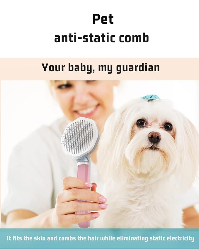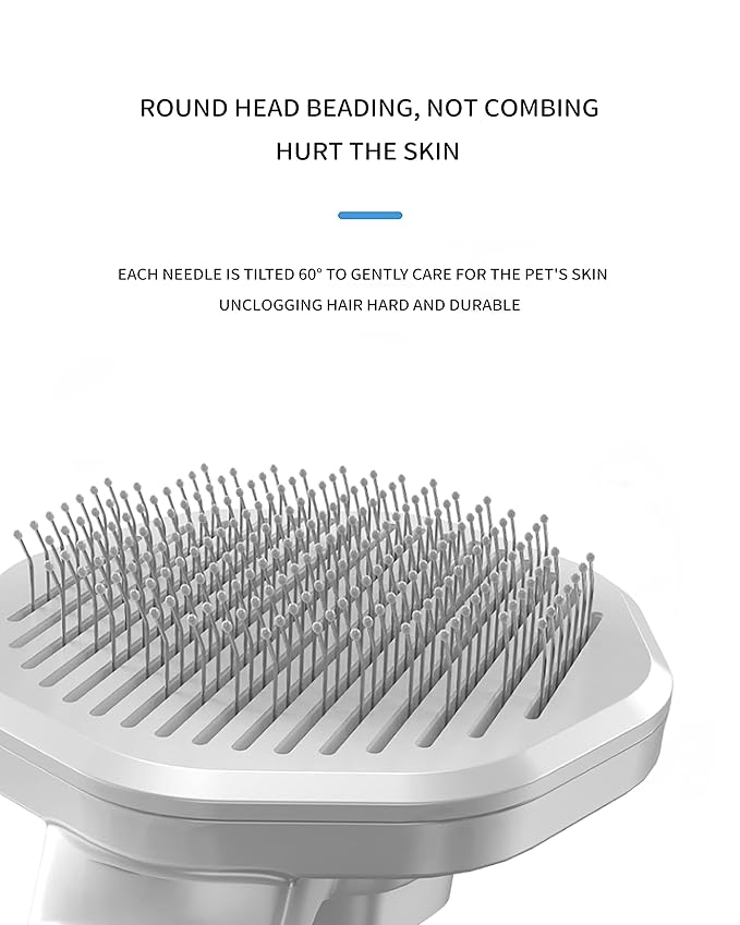 - 【One-click Cleaning Button】After brushing your pet, simply click the button. The shutter will pop out, separating the brushed hair from the metal needle, then wipe the hair off. The button of dog brush for shedding short hair on the handle saves time and energy when grooming and cleaning.