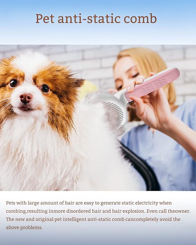 - 【PROFESSIONAL PET STATIC FREE GROOMING BRUSH】professional Antistatic function comb, It is very effective to avoid the occurrence of upright hair and electric shock when combing pet hair.especially Long hair Pets .Dog grooming brush can gently and effectively remove loose hair, tangles, knots, dander and trapped dirt. Suitable for short, medium or long, thick, thin or curly haired dogs/cats/rabbits, making your pets shiny and healthy.
