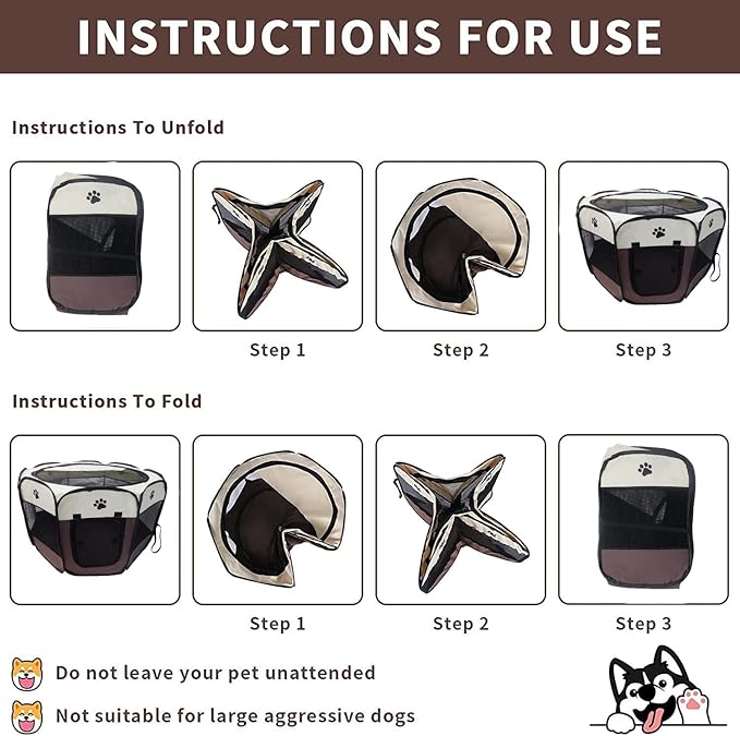 - 3.Premium construction: constructed from thick waterproof 600d polyester oxford fabric,breathable mesh window shades, and reinforced with iron wiring. spacious 8-panel design with reinforced seams and corners. zippered door provides easy in and out access for your pet. Keep your pet safely inside everywhere.