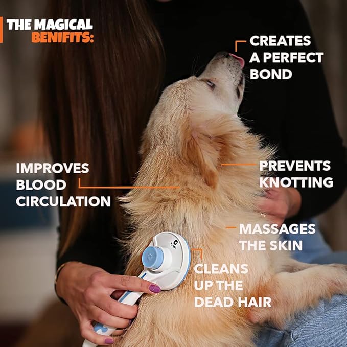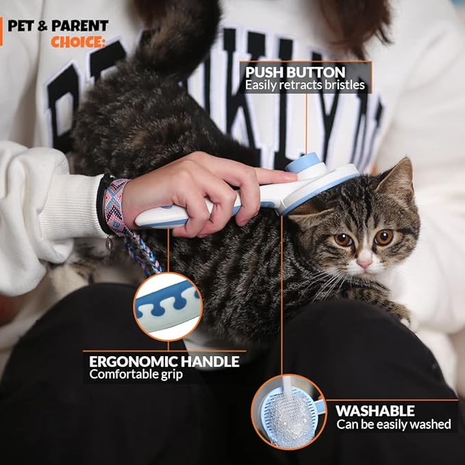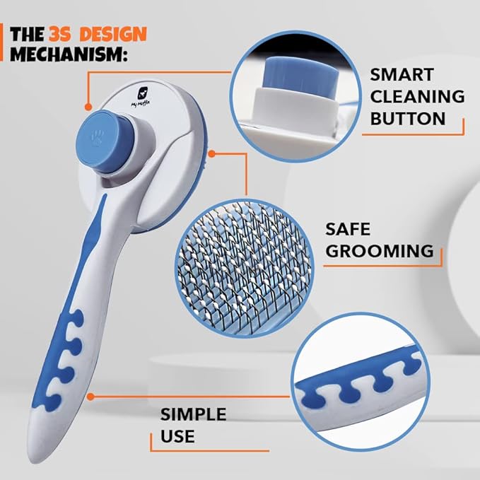 - Self Cleaning Hair Brush - Smart hair release mechanism, hair fall-off in one click, angled stainless steel bristles with plastic coating for sensitive skin, durable, keep your pet healthy