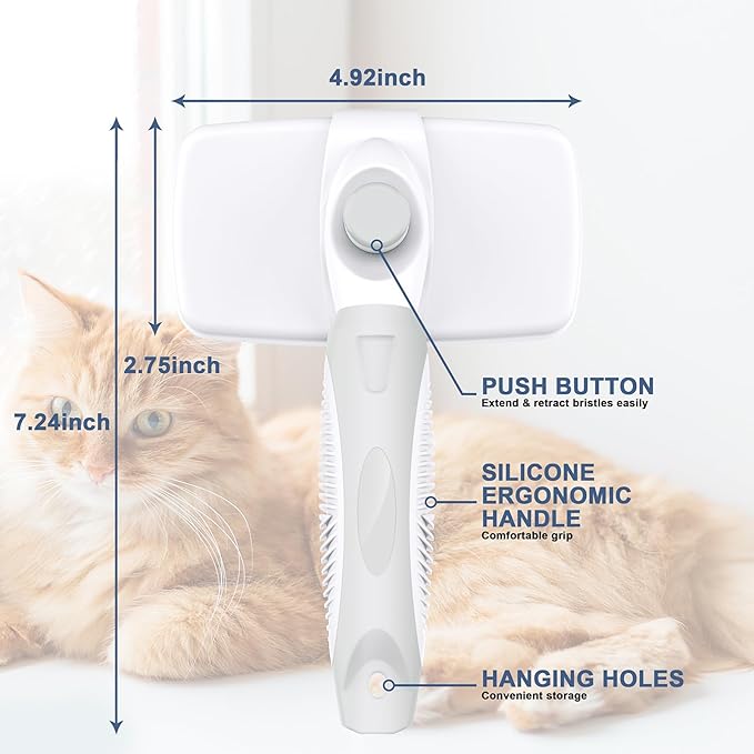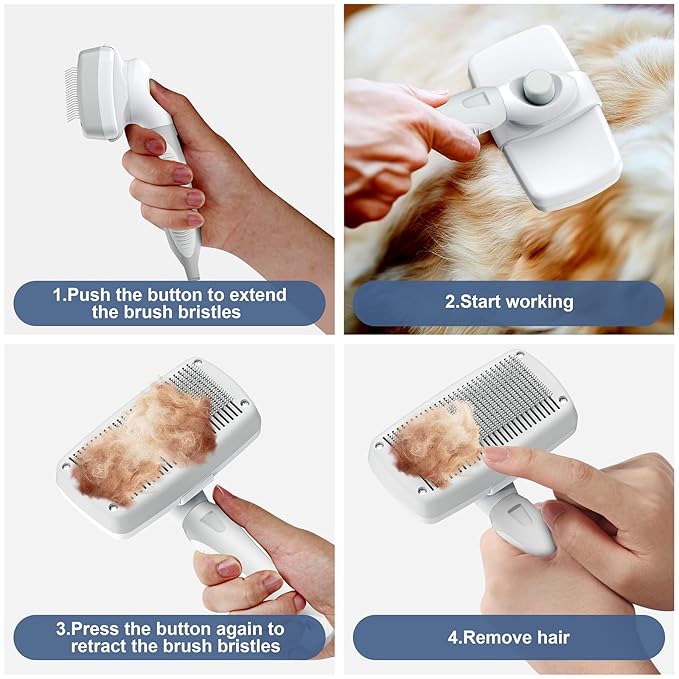 Self-Cleaning Slicker Brush for Dogs & Cats, Grooming Combs for Short & Long-Haired Dogs, Cats, Rabbits & More - Gently Removes Loose Undercoat, Mats and Tangled Hair
