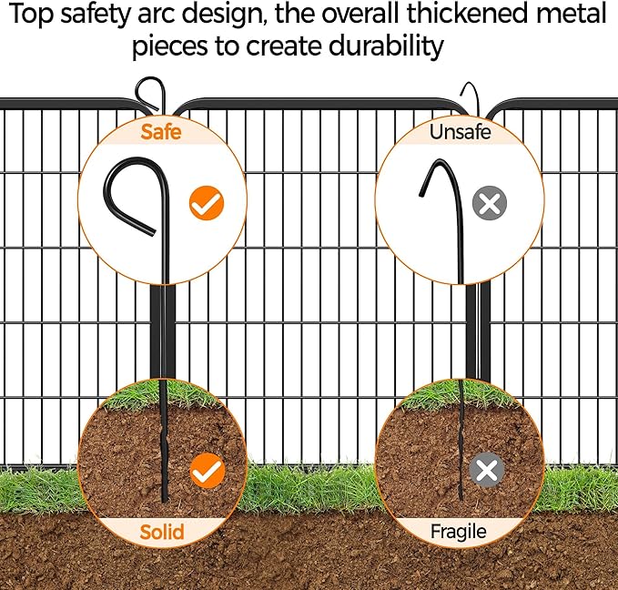 - Flexible: Panels are connected by metal anchor stakes. If you select more than one set of panels, detachable panels can be set up in different shapes by adding or removing panels, helping you build a pet pen according to the space and your needs