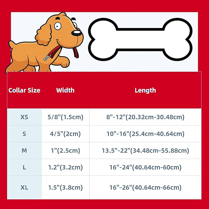 - Durable Dog Collar Size: Adjustable flower dog collar for large dogs & dog collar for small dogs. Collar for dog size-XS(5/8"Wid*8"~12"Len), S(4/5"Wid*10"~16"Len), M(1"Wid*13.5"~22"Len), L(1.2"WId*16"~24"Len), XL(1.5"Wid*16"-26"Len).