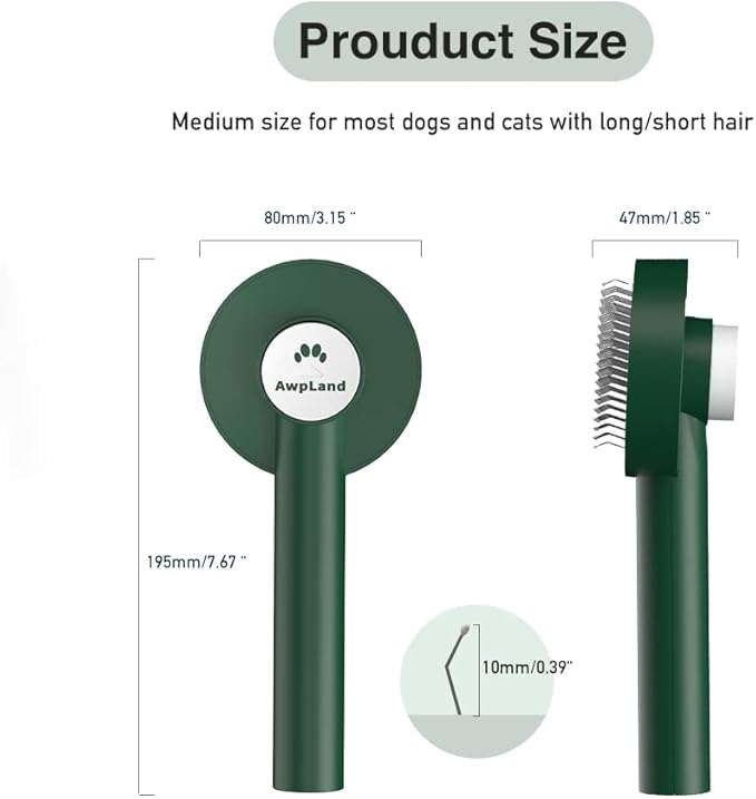 - ☘️Dog Brushes with Release Button: Awpland double coat dog brush is made with retractable bristles. When you're done brushing your pet, simply click the button and the bristles retract back into the brush, making it super simple to remove all the hair from the brush.