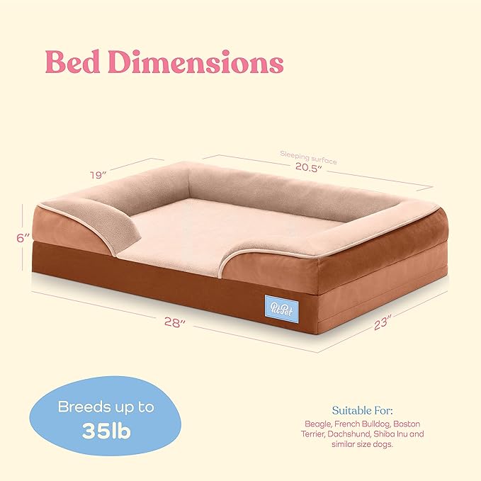 Orthopedic Sofa Dog Bed - Ultra Comfortable Dog Bed for Large Dogs - Breathable & Waterproof Pet Bed- Egg Foam Sofa Bed with Extra Head and Neck Support - (Medium, Brown)