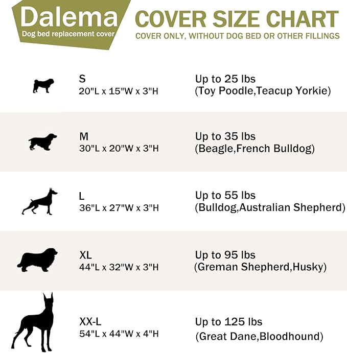 - 【DIY do it yourself dog bed】:This listing is replacement dog bed cover only,without inserts or fillers.It can filled with any what's you want such as blankets,pillows,old clothes,shredded foam or any dog mattress to make a comfortable,stylish and easy to maintain bed for your pet.