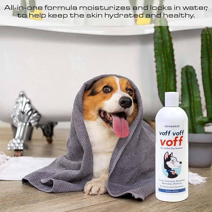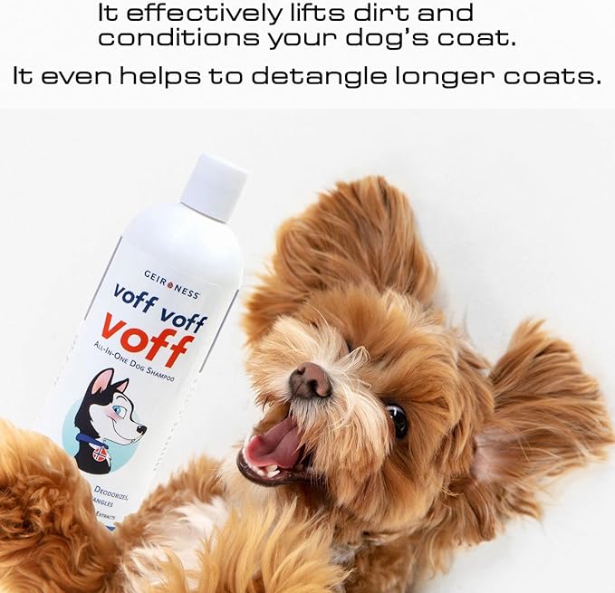 - SO SOFT CLEAN AND SHINE - Geir Ness brings this Voff Voff Voff all in one plant base dog shampoo that uses oat meal and aloe vera to hydrate skin and also as a hair conditioner, while the date palm and coconut extract helps to eliminate odor with its fresh scent.