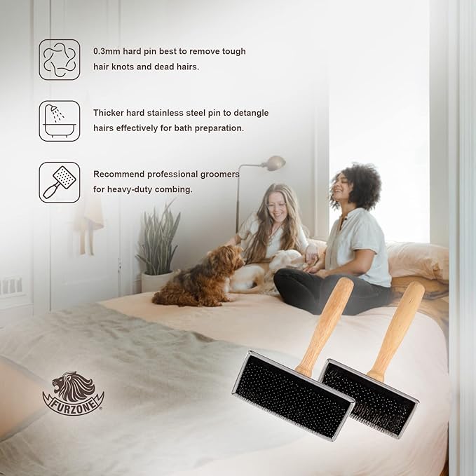 - ALL-IN-ONE SLICKER BRUSH (Package contains one brush): Sustainable, safe, durable, and user-friendly—everything professional groomers need! With Furzone’s Slicker Brush, you can easily untangle your dog's hair knots and remove loose fur before bathing them, helping to maintain a healthy coat for your pet.