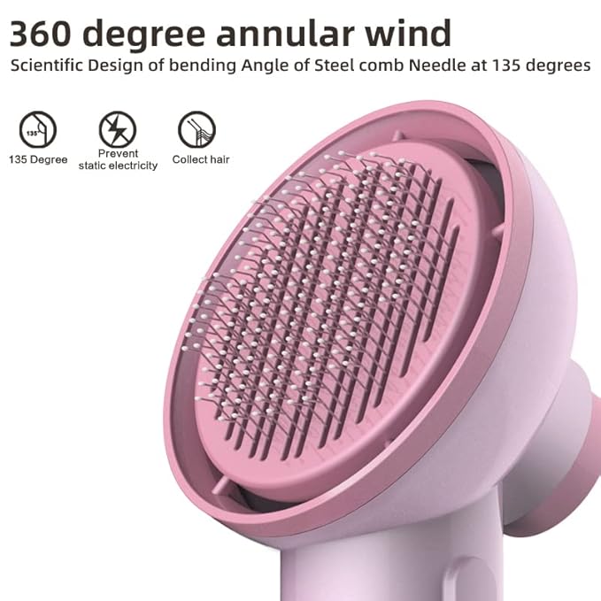 Portable 2-in-1 Gentle Grooming Blower Dryer with Slicker Brush for Dogs and Cats (Sakura Pink)