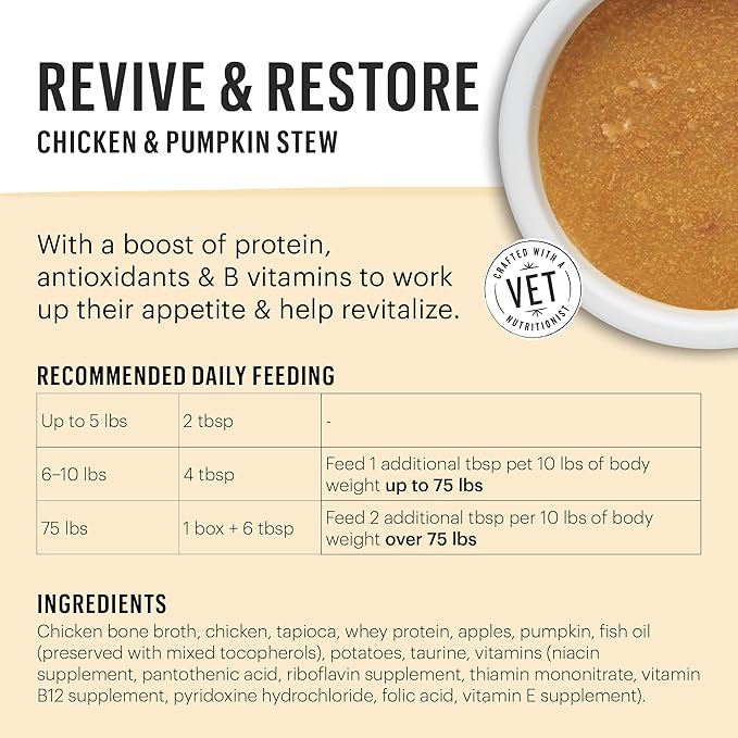 - REVIVE & REVITALIZE: This tasty topper is high in protein and fat to make it appealing to dogs struggling with appetite, and also includes a boost of vitamins and antioxidants to support a normal recovery.