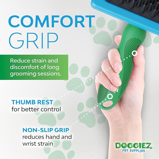 - ERGONOMIC HANDLE - Professional groomers and veterinarians love this brush because they can use it for hours without straining their hand. The secret is the non slip TPR grip material with special thumb rest to reduce wrist and hand pressure. Great for people of all ages.