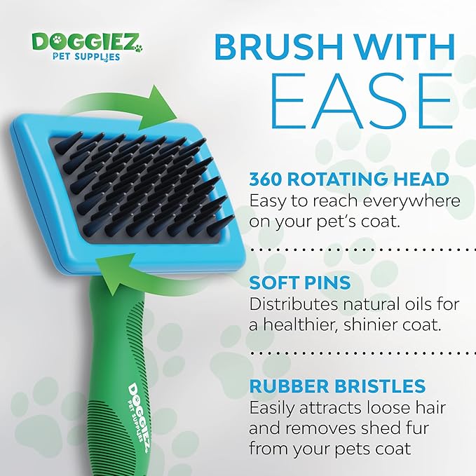 - 360 DEGREE HEAD - In addition to flexible bristle tips, this handheld pet brush features a large 360 swivel to help you pet, comb and massage your dog, cat, puppy, kitten, rabbit, horse or other animal all over their head and body.