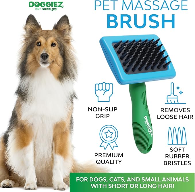 - SOOTHING BRUSH - The soft silicone rubber bristles are great for massaging your furry friend before, during or after bath and shower time. Each grooming brush tip gently massages your dog or cat while picking up dead and shedding hair to leave them looking and feeling amazing.