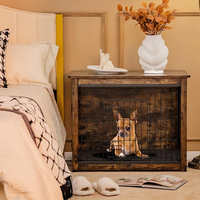 - 【Impressive Versatility:】Industrial furniture style makes the dog crate blend perfectly in different home decors, such as living room, bedroom or study room, while it plays different roles in different places. It is feasible for you to use it as a dog house, a side table or a nightstand.