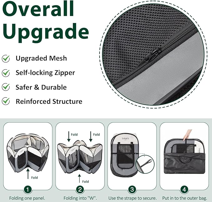 - No Assembly Required and Easy to Store: The Portable Pet Play Pen comes along with a convenient carrying case that can easily store your playpen. It takes seconds to open the dog playpen from folded storage bag, no assembly required. And it's also easy to fold back flat when not in use. Our lightweight portable pet playpen can be used indoors, outdoors, traveling, camping, etc.