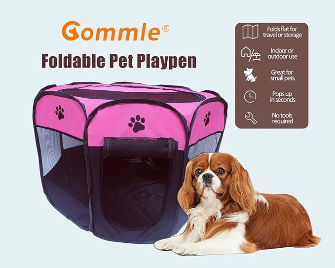 - 4.Design Features: foldable and expandable. It can be folded easily , easy storage and transportation. It is appropriate for outdoor travel and games. After expanding, it is set up to be fences to provide puppies a safe enclosed area. you can put a mat/blanket/peed pads inside, keep your pet comfortable. Our pet playpen available in multiple sizes and colors.This dog playpen for small dogs/medium dogs.