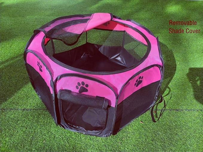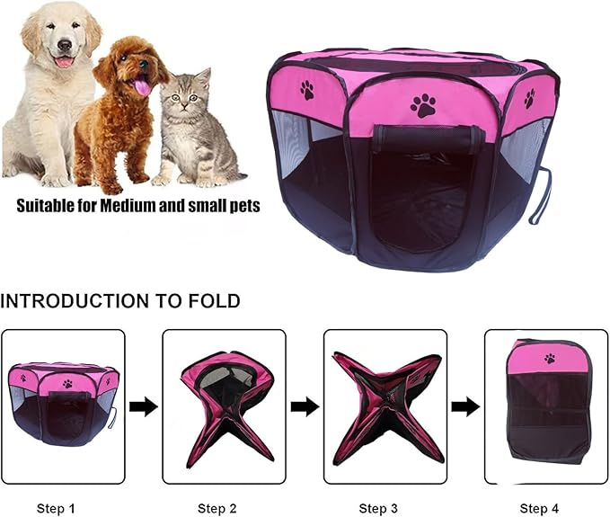 Portable Pet Playpen for Small Cat Dog Puppy Rabbit,Cat Kitten Playpen Indoor Outdoor with Carrying Case,Waterproof Bottom and Removable Zipper Top (S(28.7" x 28.7" x 16"), Rose)