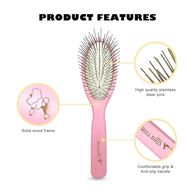 - 🐾DURABLE MATERIALS - Made of lightweight, hard-wearing wood. First-rate stainless-steel pins and polished tips are the smoothest offered. Made with natural and durable materials, our brush can last for years. You don’t have to ask for other dog fittings, our brush saves both your time and money.