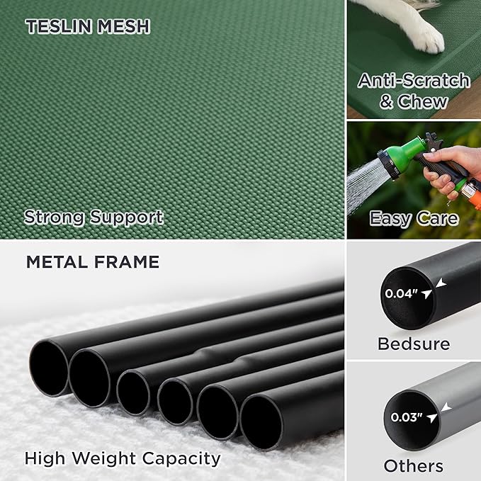 Bedsure XL Elevated Cooling Dog Bed Cot, Raised Pet Beds with No-Slip Feet, Stable Frame & Durable Supportive Teslin Recyclable Mesh, Breathable, Indoor and Outdoor, Multi Size Breathable Mesh