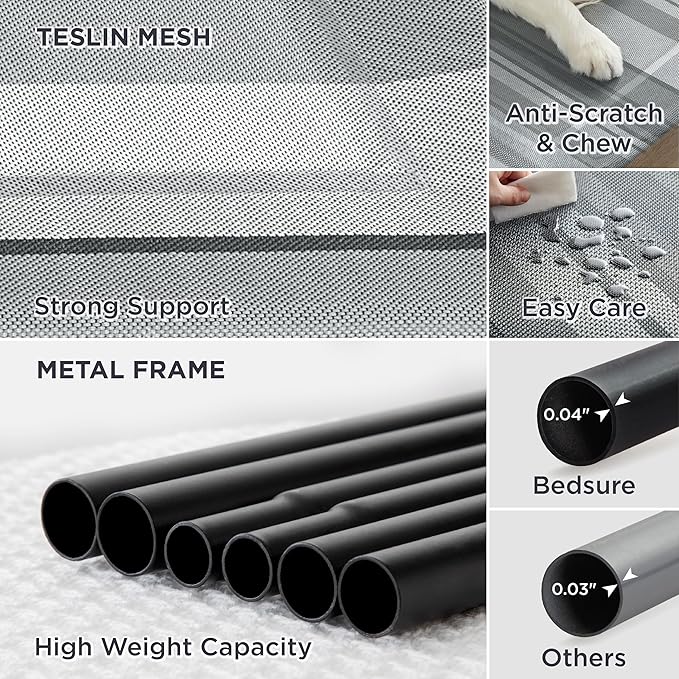 - Strong & Durable: Heavy-duty Teslin mesh holds up against scratching and chewing, providing excellent support and even pressure distribution to reduce joint and muscle pain. The strength-tested lightweight metal frame supports dogs up to 75 lbs.
