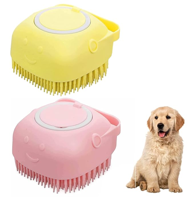 Silicone Dog Bath Brush for Grooming and Cleaning Short and Long-Haired Dogs and Cats (Yellow&Pink)