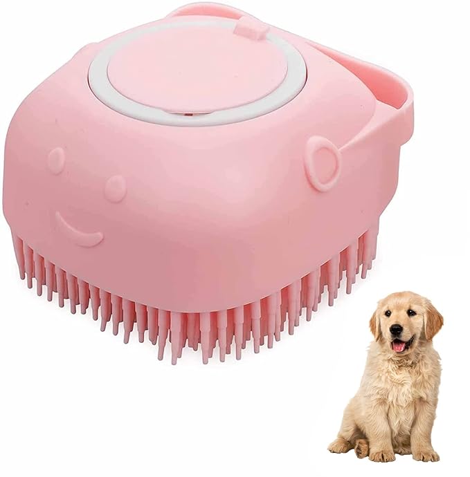 - EASY TO USE: At the top of the bottom, you can open the small ring and pour shampoo and water. When in use, you can press the top silicone button to produce foam. will gently remove loose hair, dust, and dirt. Dog Hair Brush with numerous soft nubs will ensure a no-scratching massage without scratching pet skin and dead fur while bathing.